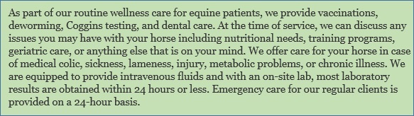 The Large Animal services offered at Clearwater Veterinary Centre include: